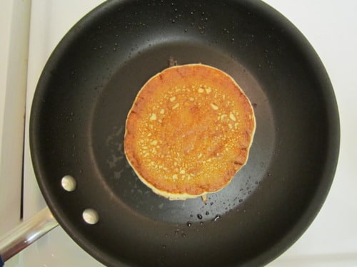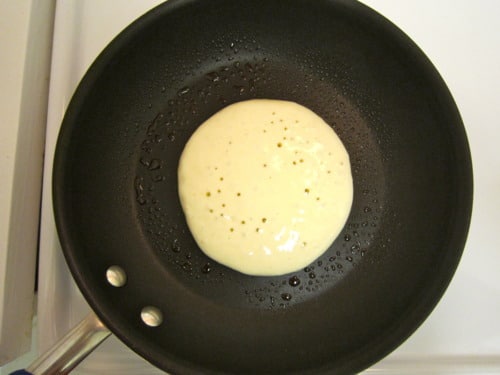 Heat a nonstick pan or cast iron griddle over medium heat. Add a pat of butter and heat until the butter just begins to sizzle. (I just used nonstick cooking spray).