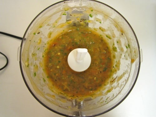 Add to a bowl with fresh cilantro and blend using an immersion blender or regular blender. (A food processor works as well.)