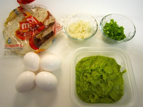 Cook tortillas in a hot pan for 45-60 seconds on each side (this will make them soft and pliable). Place the tortillas on the serving plate, spread with refried beans, add some barbacoa beef, then top with poached egg, cheese, green onions, and avocado sauce.