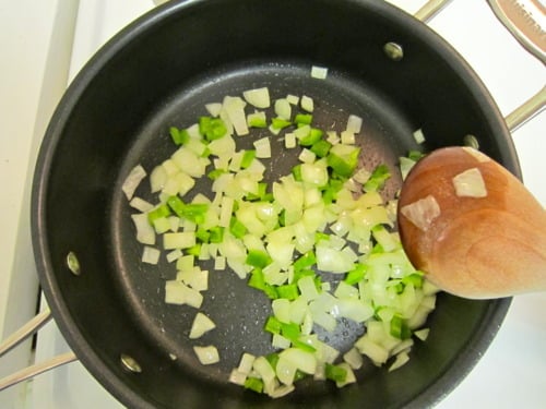 Heat the olive oil in a saucepan over medium heat. Add the onion and jalapeno; saute until tender and golden, about 4 minutes. Add the garlic and stir constantly for 60 seconds.