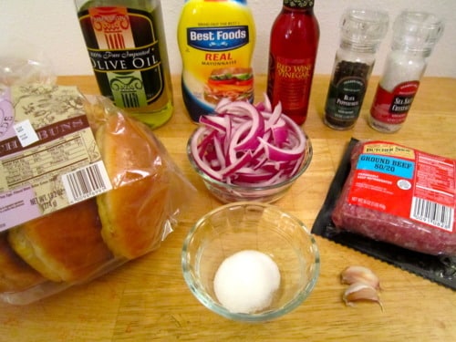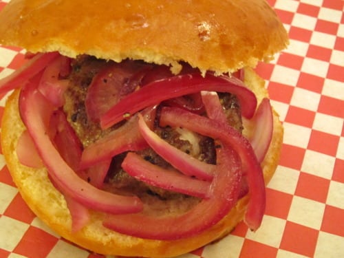 Bistro Burgers with Pickled Onions (adapted from Martha Stewart):