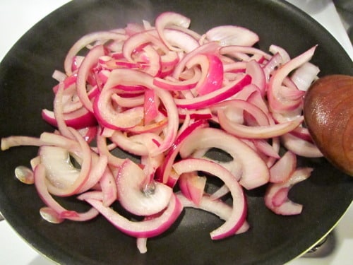 Heat 1 teaspoon olive oil in a medium skillet over medium high heat. Add onion, and cook until softened, about 2 minutes. Season with salt and pepper, to taste.