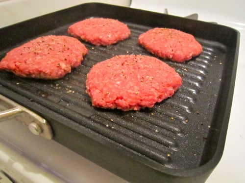 Heat remaining 1 teaspoon olive oil in a grill pan or cast-iron skillet over medium high heat. Grill the patties for 3 minutes on each side for medium-rare or 4-5 minutes for medium, flipping only once.