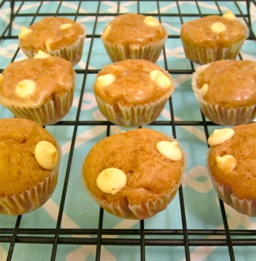 White Chocolate Chip Pancake Muffins with Maple Syrup Glaze