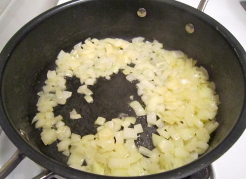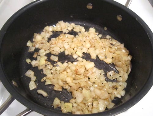 Melt butter in a medium skillet or saucepan over medium heat. Add the onions and saute until translucent, about 5 minutes.