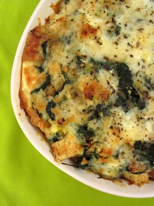 Spinach and Cheese Strata (adapted from Annie’s Eats):