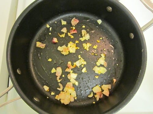 While the pasta is cooking, heat olive oil over medium heat in a large skillet or saucepan. Add the shallots and garlic and saute until shallots begin to soften, about 2 minutes.