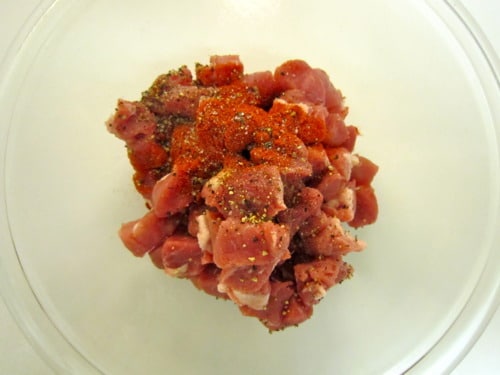 While the pasta is cooking, combine the pork with 1 tablespoon paprika in a medium bowl; season with salt and pepper, to taste.