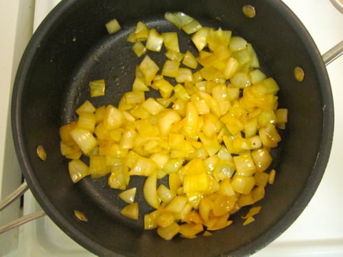 Reduce heat to medium and add remaining tablespoon oil and onion. Cook until onion is soft, about 5 minutes.