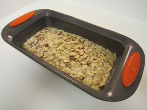 Sprinkle with sliced almonds, if using, using your fingertips to gently press the almonds into the batter.