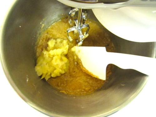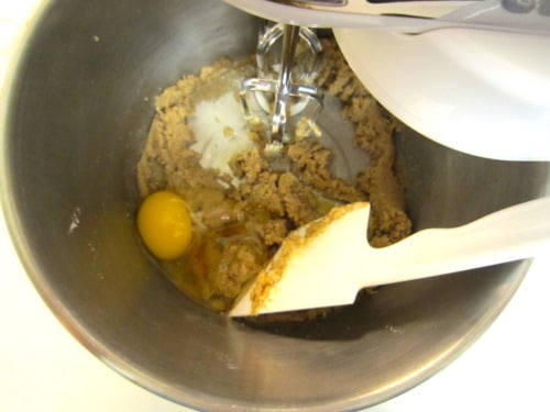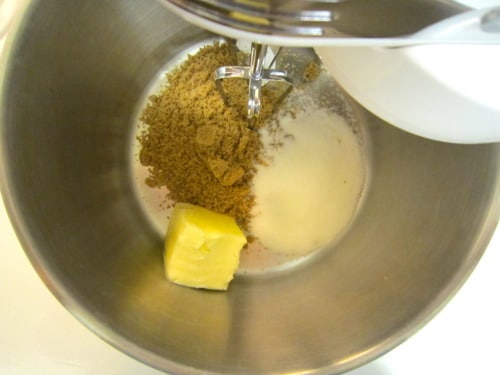 In the bowl of an electric mixer fitted with the paddle attachment, beat butter and sugars on medium-high until light and fluffy, about 2-3 minutes.