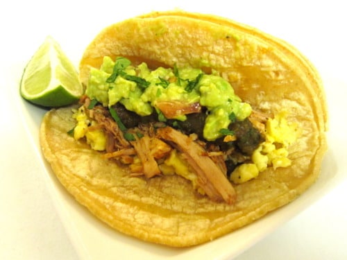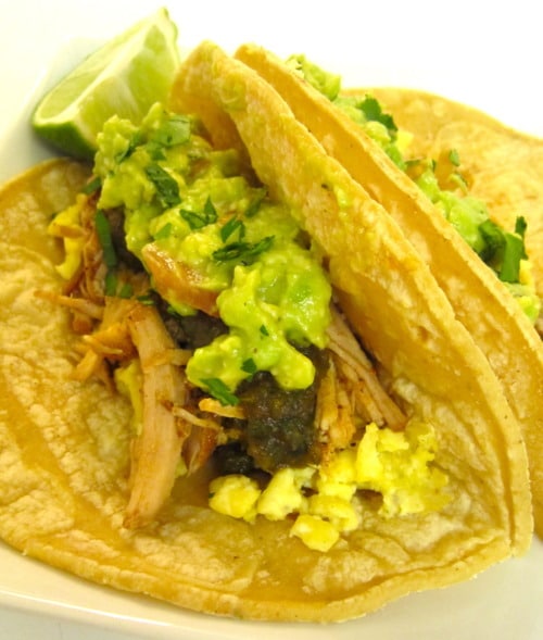 We used the carnitas for these breakfast tacos that we made with corn tortillas, scrambled eggs, salsa, homemade guacamole, cilantro and a squirt of fresh lime juice. It was a taco filled with tons goodies along with the juicy carnitas that burst with flavor in every bite. I’m not sure if I would be willing to make this again because it was a bit too much work but we definitely enjoyed it!