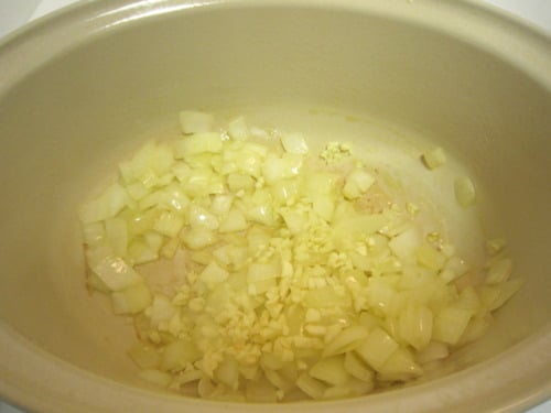 Heat remaining 1 tablespoon olive oil in a Dutch oven over medium heat. Add the onions and cook until beginning to soften, about 5 minutes.