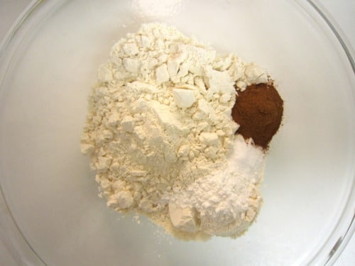 In a large bowl, combine the flour, baking powder, baking soda, salt and cinnamon.