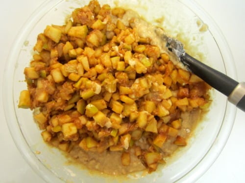 Stir in the flour to coat the apples; set aside. (This prevents the apples from sinking to the bottom of the muffins).