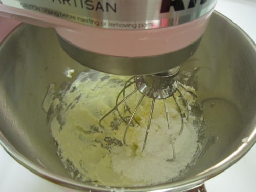 With the mixer on low speed, gradually add the powdered sugar, beating just until incorporated.