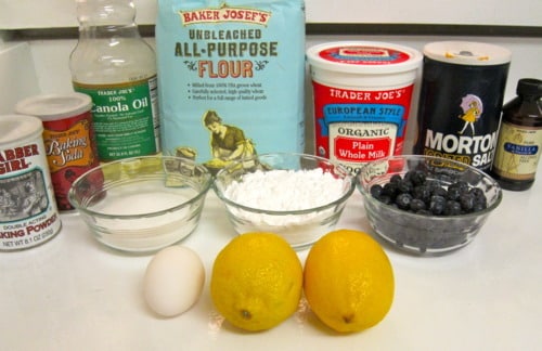 In a large glass measuring cup or another bowl, whisk together the yogurt, oil, sugar, egg, vanilla, lemon zest and lemon juice.