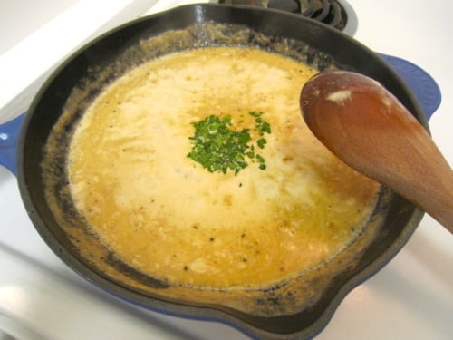 Serve immediately, with the pasta alongside the chicken, both topped with the sauce and garnished with parsley, if desired.