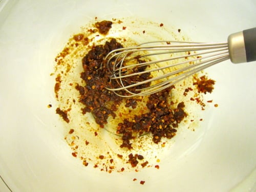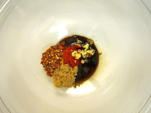 To prepare the sauce, combine the balsamic vinegar, garlic, brown sugar, red-pepper flakes, paprika and remaining 1 teaspoon salt in a large bowl.