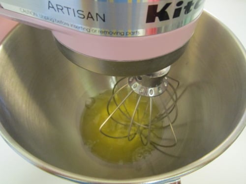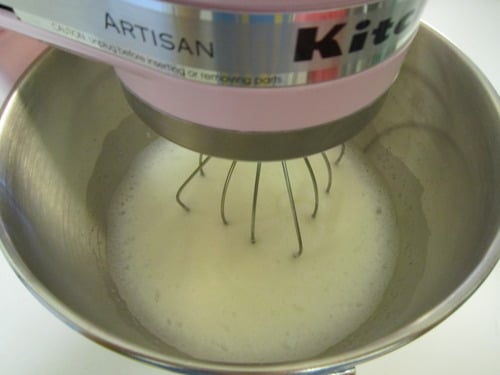 In another clean bowl of an electric mixer fitted with the whisk attachment, whip the egg whites until stiff peaks form.
