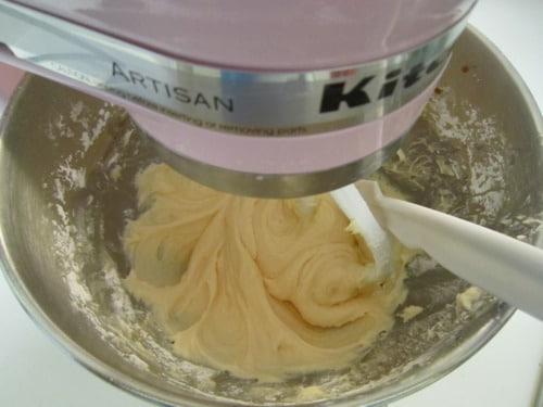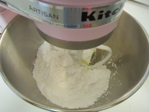 With the mixer on low speed, add the dry ingredients, beating just until incorporated.