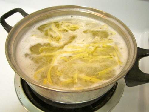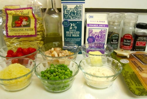 - 16 ounces fettuccine (I used this garlic basil linguine I found from Trader Joe’s, which worked out quite well)