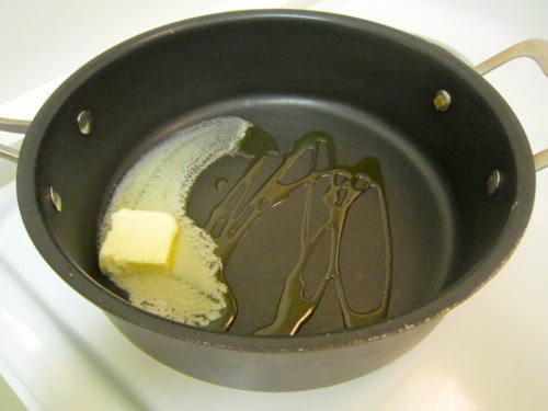 Heat the butter and olive oil in a medium saucepan over medium heat.