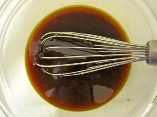 In a small bowl, whisk together the brown sugar, hoisin sauce, rice wine vinegar, ketchup, soy sauce and 1/2 cup water; set aside.
