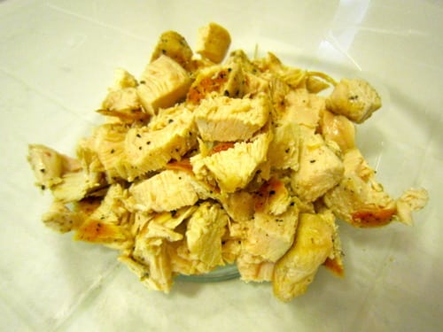 Because I like to focus on making dinner, I usually don’t cook during lunchtime. But now I’ve found a wonderfully quick and easy lunch dish that’s super light, healthy, and filling. The only cooking part involved in this dish is the chicken breast. That’s it. Once the chicken is fully cooked and diced into bite-sized pieces, everything else is added into one bowl, and voila, lunch is served. Just be sure to carve out about an hour to let the flavors meld.