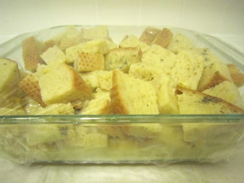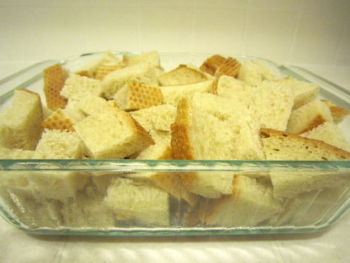- 1/2 loaf French bread, cut into large cubes (I used leftover sourdough bread)