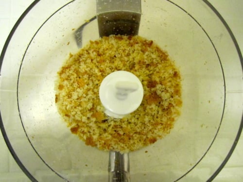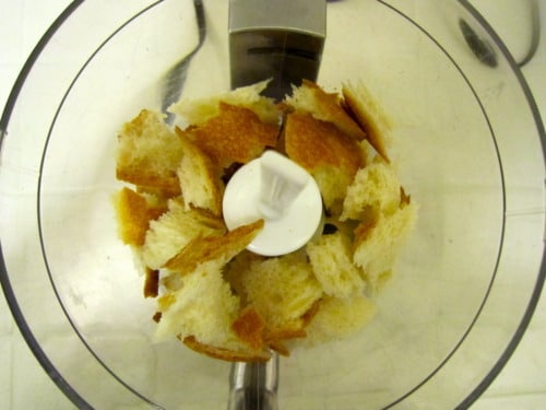In the bowl of a food processor, pulse the bread until they resemble crumbs.