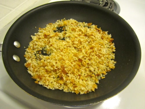 Heat a small skillet over medium heat. Add the bread crumbs and toast until golden brown, about 4-5 minutes.