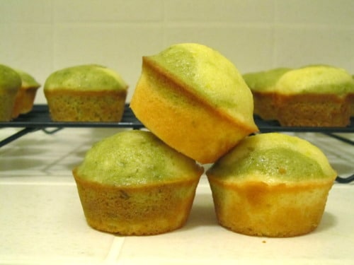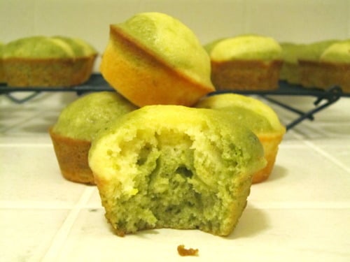 Although the actual loaf pan was a bit of a fail, I did get something great out of it: Meyer Lemon and Matcha Marble Mini Muffins! I made mini muffins with the leftover batter and they tasted even better than the pound cake. The texture was significantly lighter, and their cuteness and size just makes it all the more better.