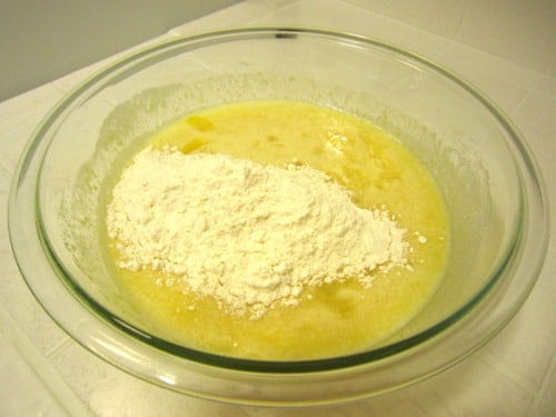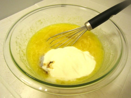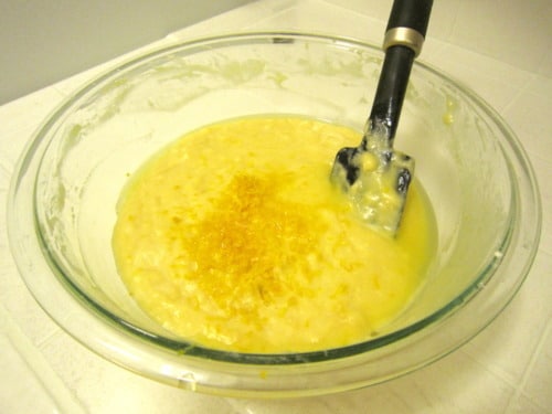Divide the batter in half into two separate bowls. In one bowl, fold in the lemon zest and lemon juice.