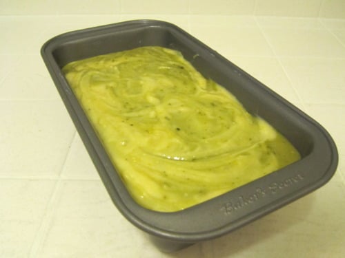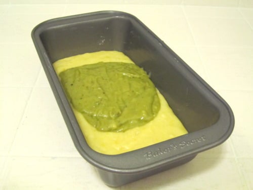 Spoon the two batters into the prepared loaf pan in 4 layers, alternating between spoonfuls of lemon and green tea batter. (Be sure to leave at least 1-inch of room at the top to let the cake rise.)