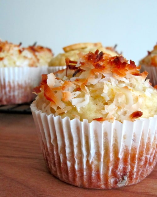 Until that vacation happens, I have these muffins to keep me company. It has a banana muffin base with orange zest and shredded coconut, giving you a nice well-balanced tropical muffin filled with fun, fresh flavors. It’s a tropical paradise right in your kitchen.