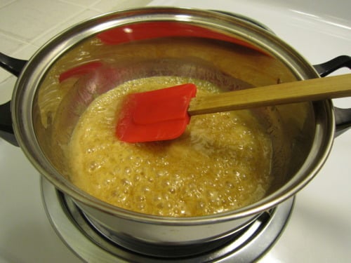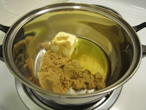 Melt the butter, brown sugar and honey in a small saucepan over medium high heat until it begins to bubble.