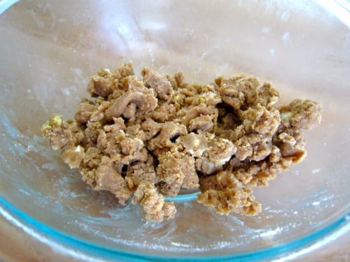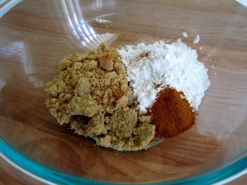 To make the crumb topping, combine the flour, sugar and cinnamon a small bowl.
