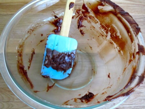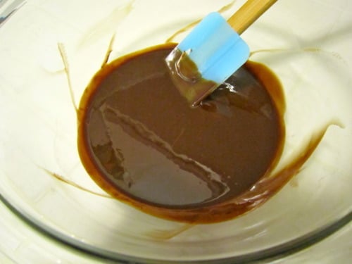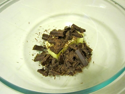 Microwave the butter and chocolate in a large bowl in 30 second intervals, stirring in between, until completely melted and smooth, about 2 minutes.