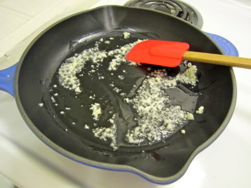 Heat canola oil in a medium skillet over medium heat. Add the garlic and and saute until fragrant, about 1 minute.