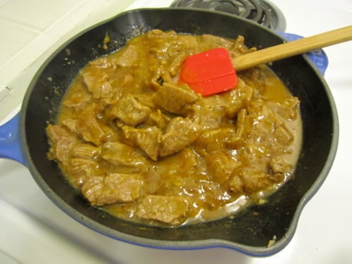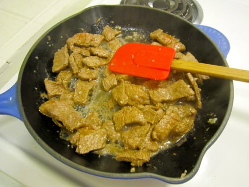 Add the steak and cook, turning occasionally, until cooked through, about 3-4 minutes.