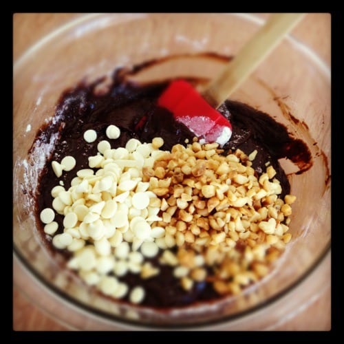 I was preparing to send another care package to Jason but since I couldn’t choose between making cookies and brownies, I decided to make a hybrid with these white chocolate macadamia nut brownie cookies (recipe to come). Pretty genius, right?