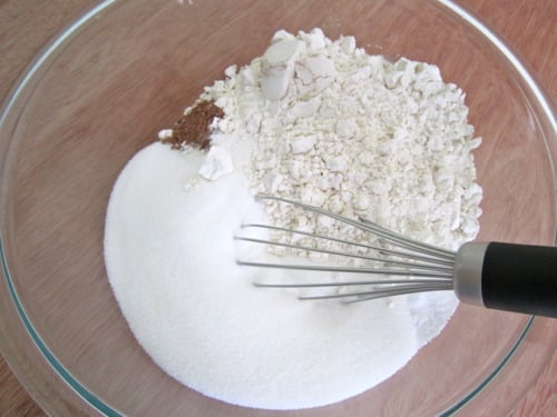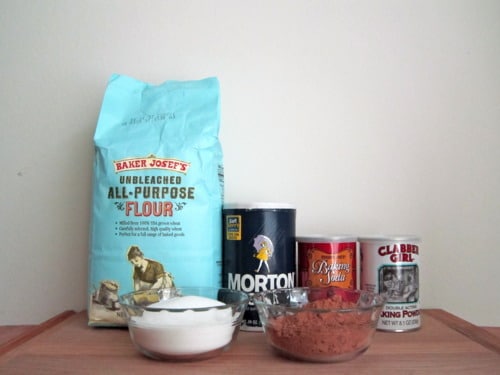 In a large bowl, combine the flour, cocoa powder, sugar, baking powder, baking soda and salt.