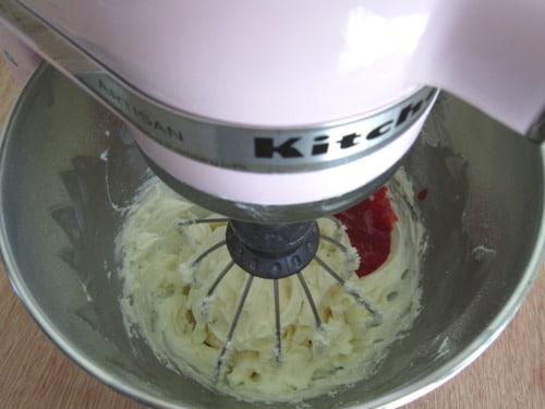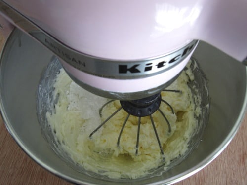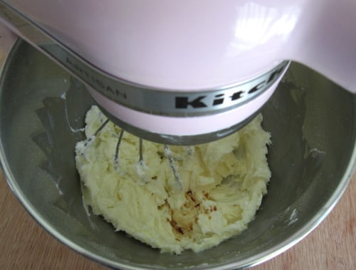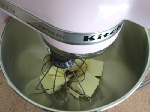 In the bowl of an electric mixer fitted with the whisk attachment, beat the butter on medium speed until light and fluffy, about 2-3 minutes.