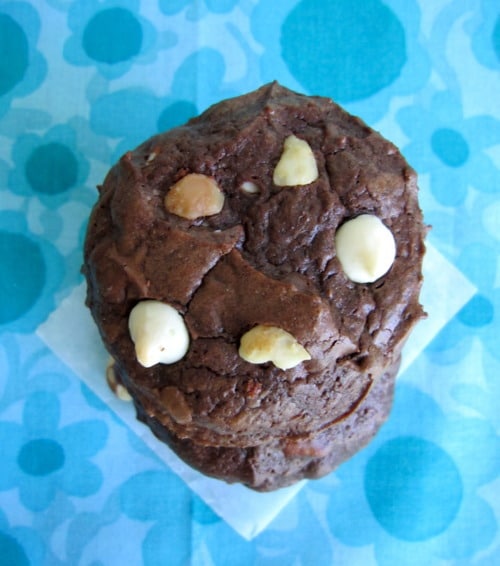 Chocolate Brownie Cookies with White Chocolate Chips and Roasted Macadamia Nuts (adapted from Eats Well With Others, original recipe from Joy the Baker Cookbook)