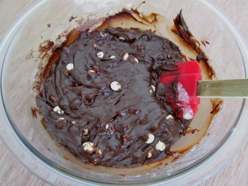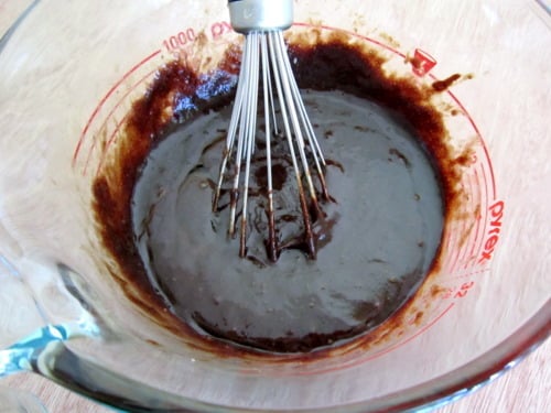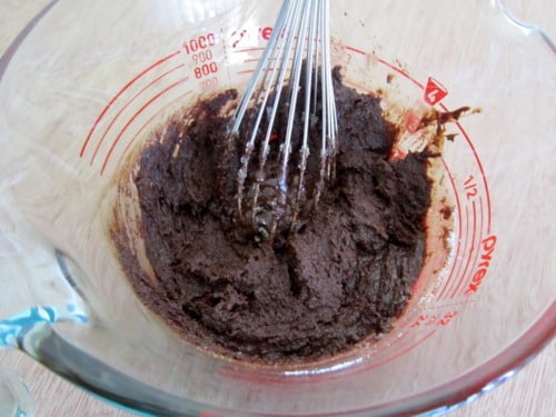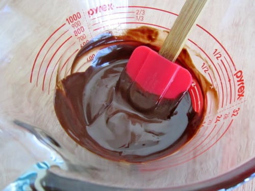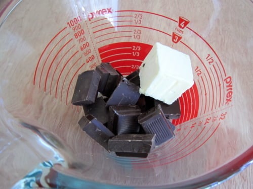 Microwave the butter and chocolate in a large bowl in 30 second intervals, stirring in between, until completely melted and smooth, about 2 minutes.