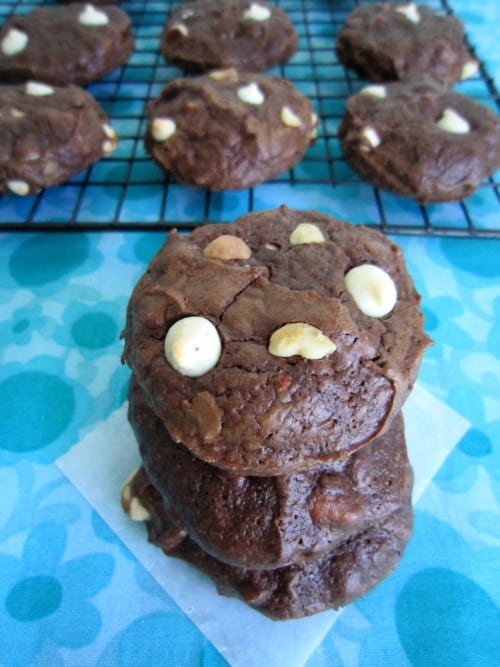 Chocolate Brownie Cookies with White Chocolate Chips and Roasted Macadamia Nuts