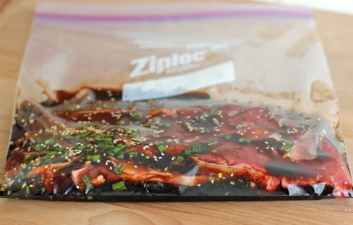 Place the steak into a large Ziploc bag and pour in the marinade. Give it a good shake and let it marinate in the fridge overnight.