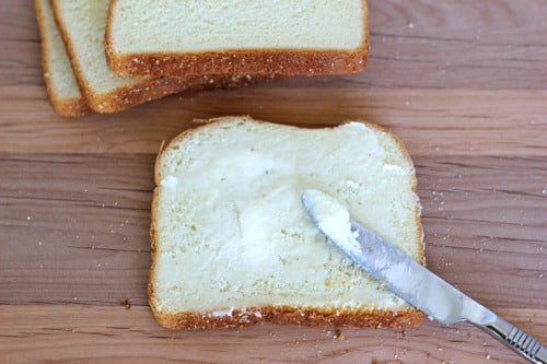It’s time to put together the sandwiches. Let’s first butter one side of each of the 4 bread slices.