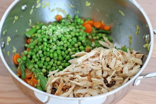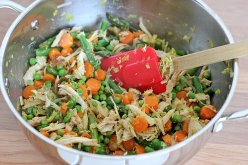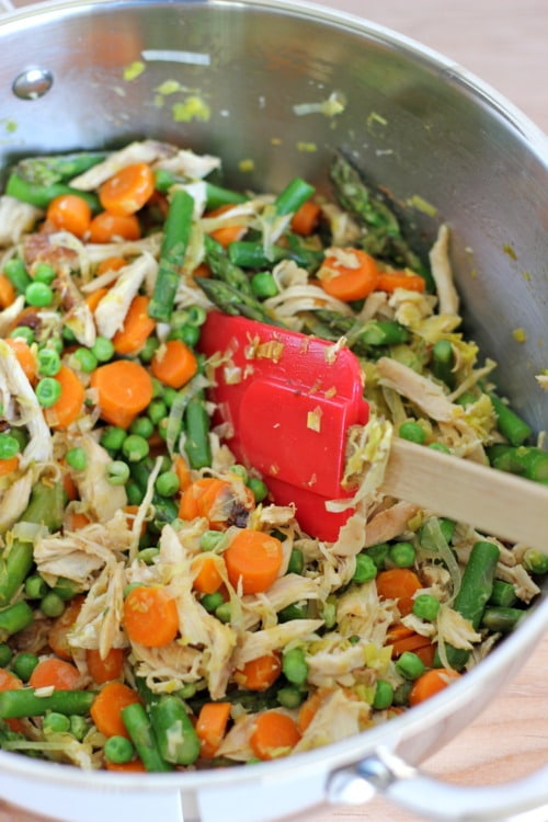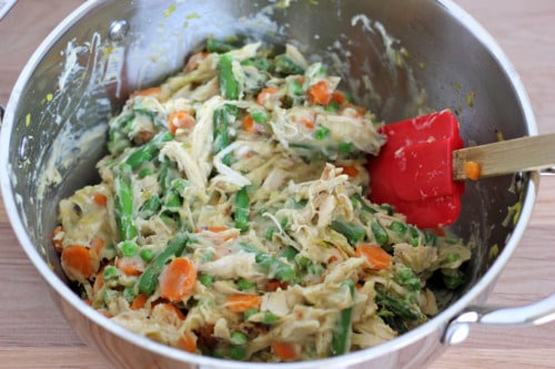 Add sauce to the chicken-vegetable filling and gently toss to combine.